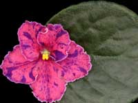 Medium pink, double and semidouble stars artistically painted with dark blue fantasy specks and streaks. The petal tips are lightly fluted. The medium green tailored foliage is quilted and grows as a standard.