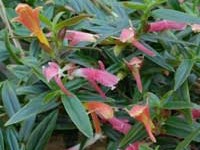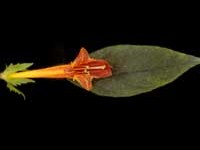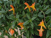 Orange corolla with red lobes, green calyx , and red tips. The dark green foliage has a red reverse, and is good for hanging baskets.