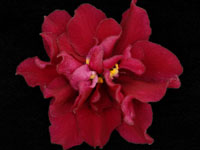 Double, violet-purple flowers, with coral-pink fantasy markings. Dark green, plain foliage. Standard.