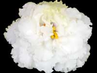 Large, double white with purple-violet splashes. Dark green, plain foliage. Standard.