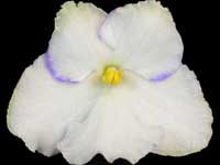 Single and semi-double white flowers with blue edge. Light green foliage with white variegation. Semiminiature.