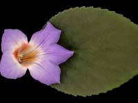 Unnamed species collected from Vietnam. Long and pointed, somewhat glossy, medium green leaves, grow in a nice flat rosette. Blooms are lavender with yellow lines on a white throat. Good bloomer.