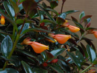 Abundant orange flowers, tipped with yellow. Compact grower with small, glossy green leaves. This variety is probably our best bloomer.